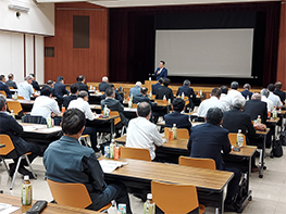 JA石川県中央会とJAバンク石川信連は、9月3日に金沢市の石川県農業会館で「JA経営者セミナー」を開催しました。大和証券(株)チーフストラテジストの谷栄一郎氏と参議院議員の藤木眞也氏を講師に、県下15JAの常勤役員ら約70名が最新の金融情勢と農業情勢について学びました。