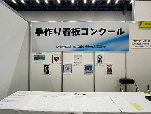 JA石川県青壮年部協議会 JA石川県青壮年部協議会では、国産農畜産物の消費拡大へつなげるため、「国消国産!フルーツグミチャレンジ!」と題した、日本全国6ブロックのグミが当たる福引チャレンジを実施しました。その他、青壮年部部員が作成した手作り看板への投票やジャンボカボチャの展示などを実施し、2日間の来場者は1,500名を超え、イベントは大盛況となりました。 |